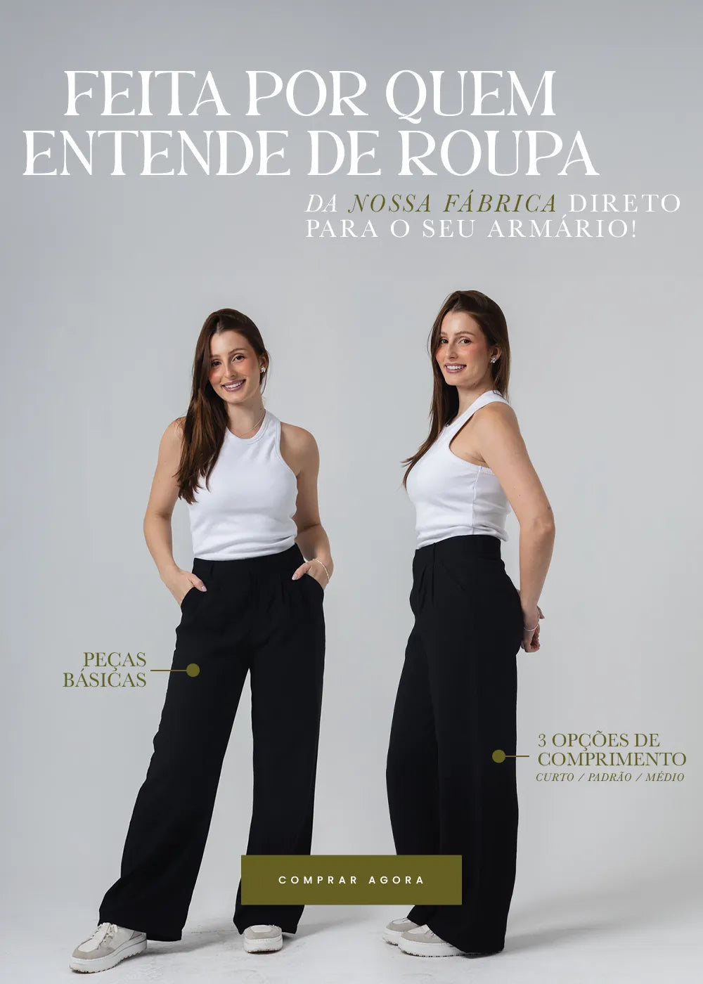 Comprei a Calça Milão e fiquei impressionada com o caimento. O comprimento padrão ficou perfeito na minha altura (1,64m), sem precisar ajustar barra. O tecido tem uma estrutura de alfaiataria de verdade, mas é leve e confortável. Já usei no escritório e num jantar com amigas. Quero em outra cor agora.
